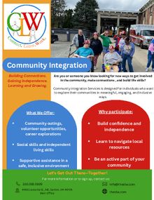 This highlights CLW’s Community Integration Services, designed to help individuals with developmental disabilities actively engage in their communities, build meaningful relationships, and develop life skills. Through outings, volunteer experiences, and personalized support, participants grow in confidence, independence, and social connection.